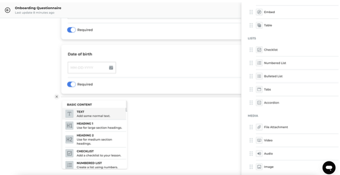 Click the + sign and choose how you’d like to start your onboarding from the options (this could be a video, a form, a welcome pack…the possibilities are endless.